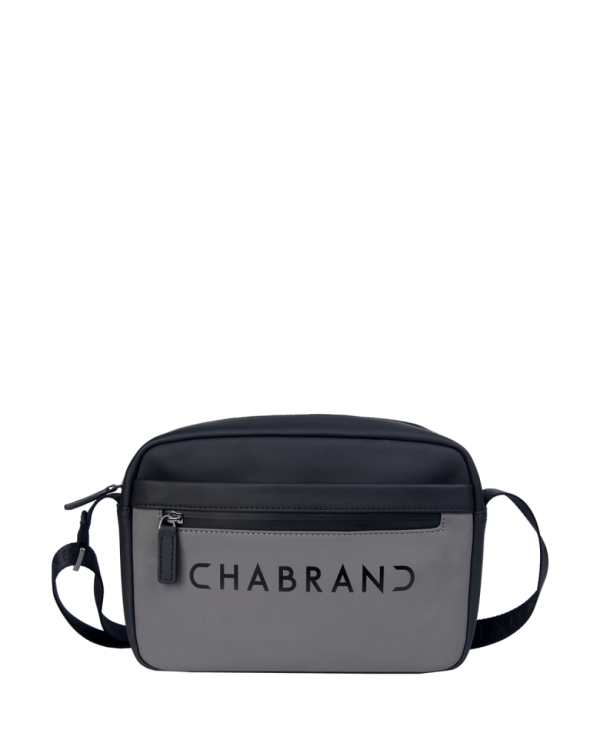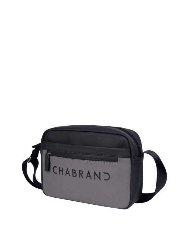 Mini-sacoche noire et grise en synthétique touché peau de pêche