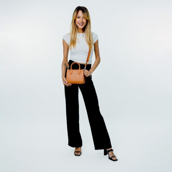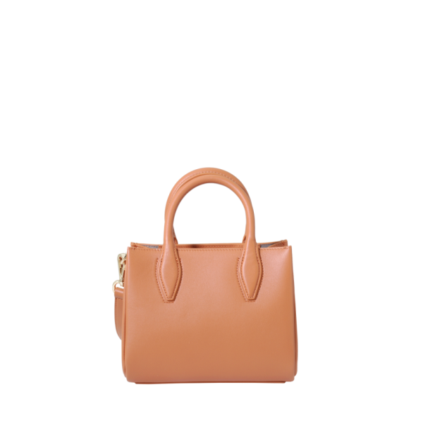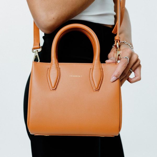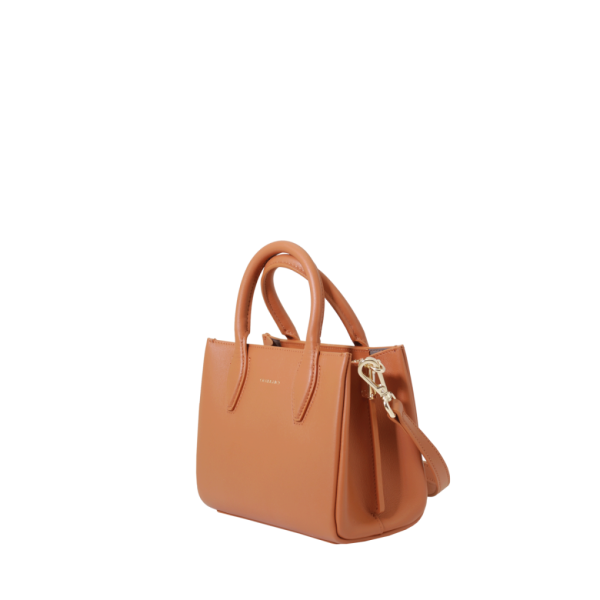 Porté main camel en cuir de vachette lisse