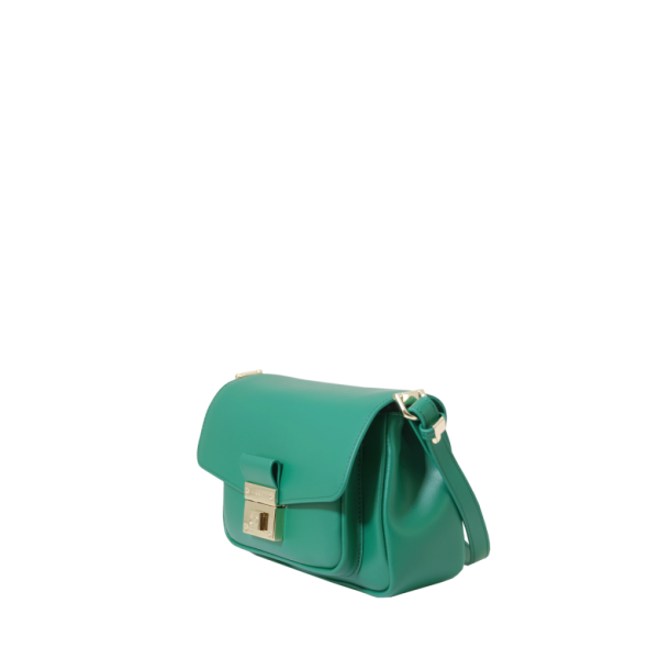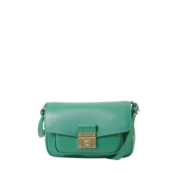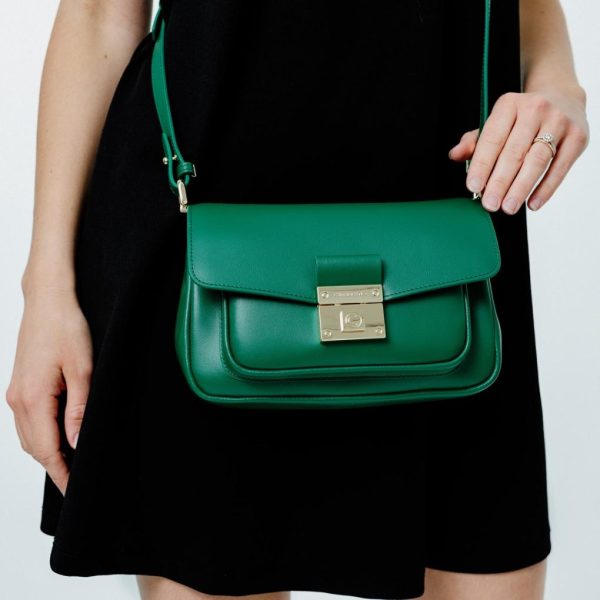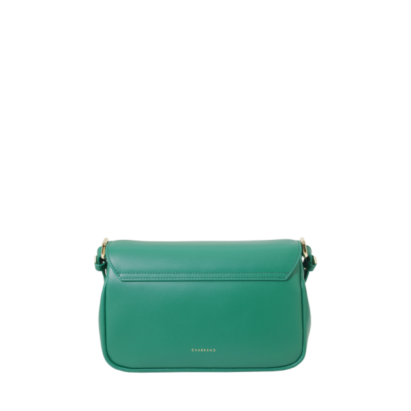 Porté épaule vert en cuir de vachette lisse