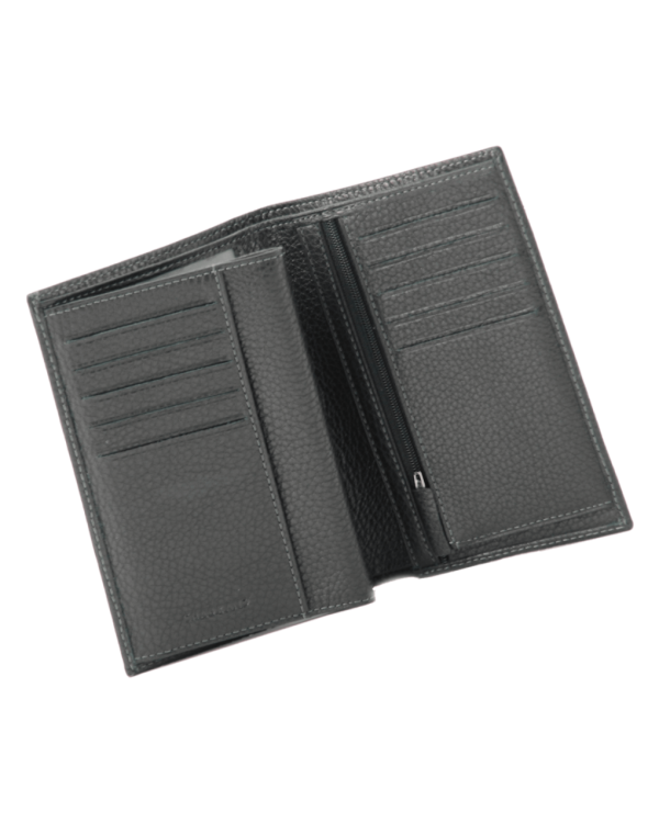 Portefeuille noir en cuir de vachette grainé